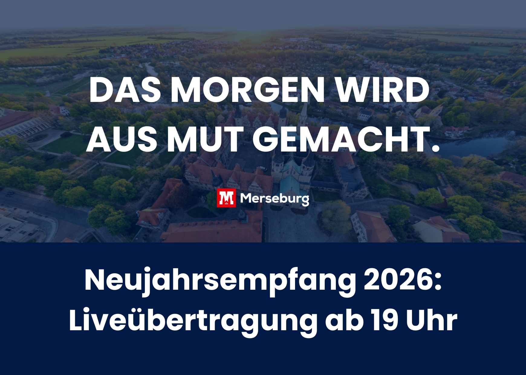 Unter dem Motto „Das Morgen wird aus Mut gemacht“ blickt die Stadt Merseburg gemeinsam mit Ihnen auf das Erreichte zurück und richtet den Blick nach vorn: Auf Chancen, Herausforderungen und die Menschen, die Merseburg mit Ideen, Engagement und Zuversicht gestalten.