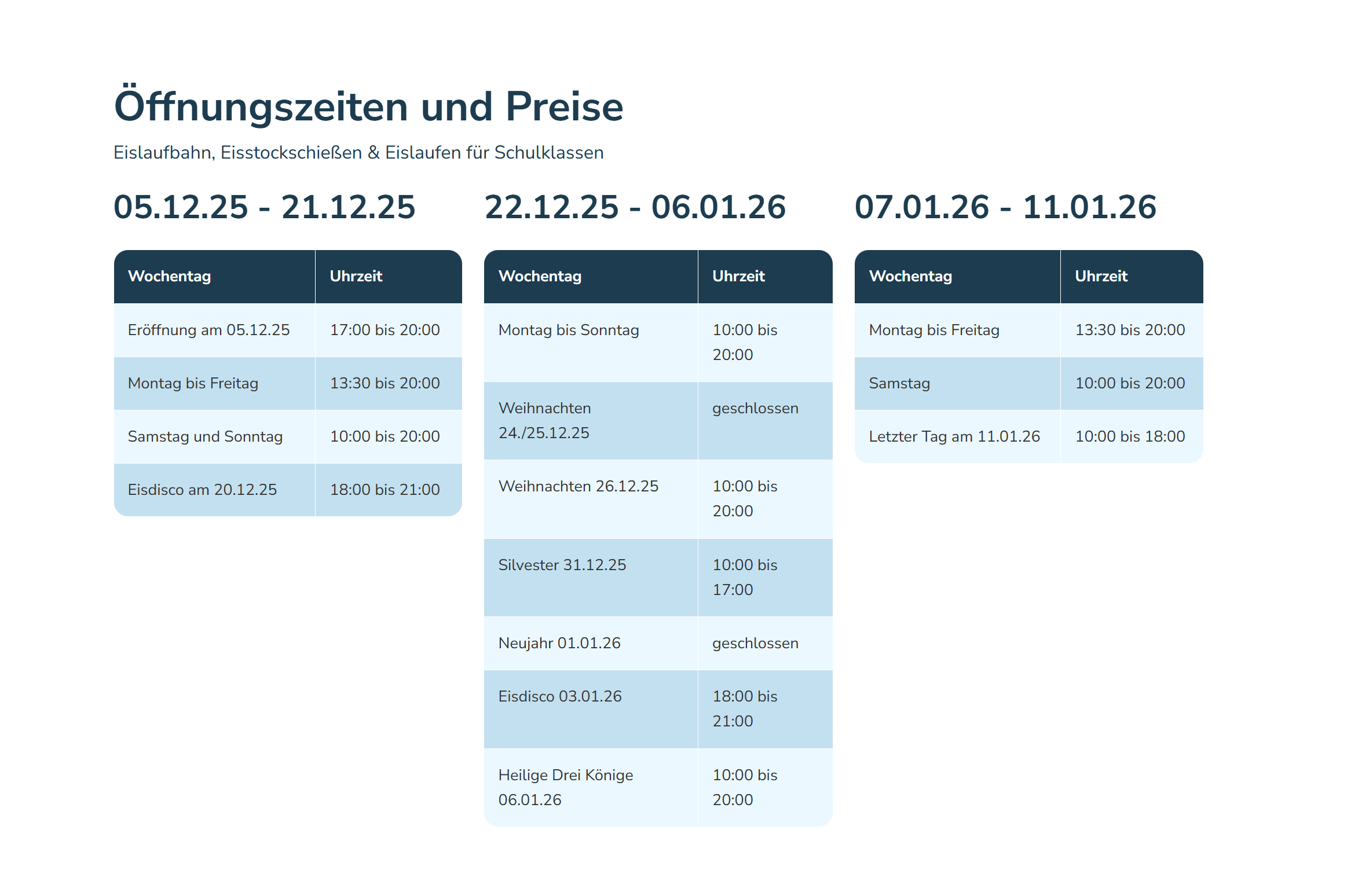 Alle Informationen zu Öffnungszeiten und Preisen finden Sie auf der Webseite: www.stadtwerke-merseburg.de/kundenservice/eislaufbahn-2025